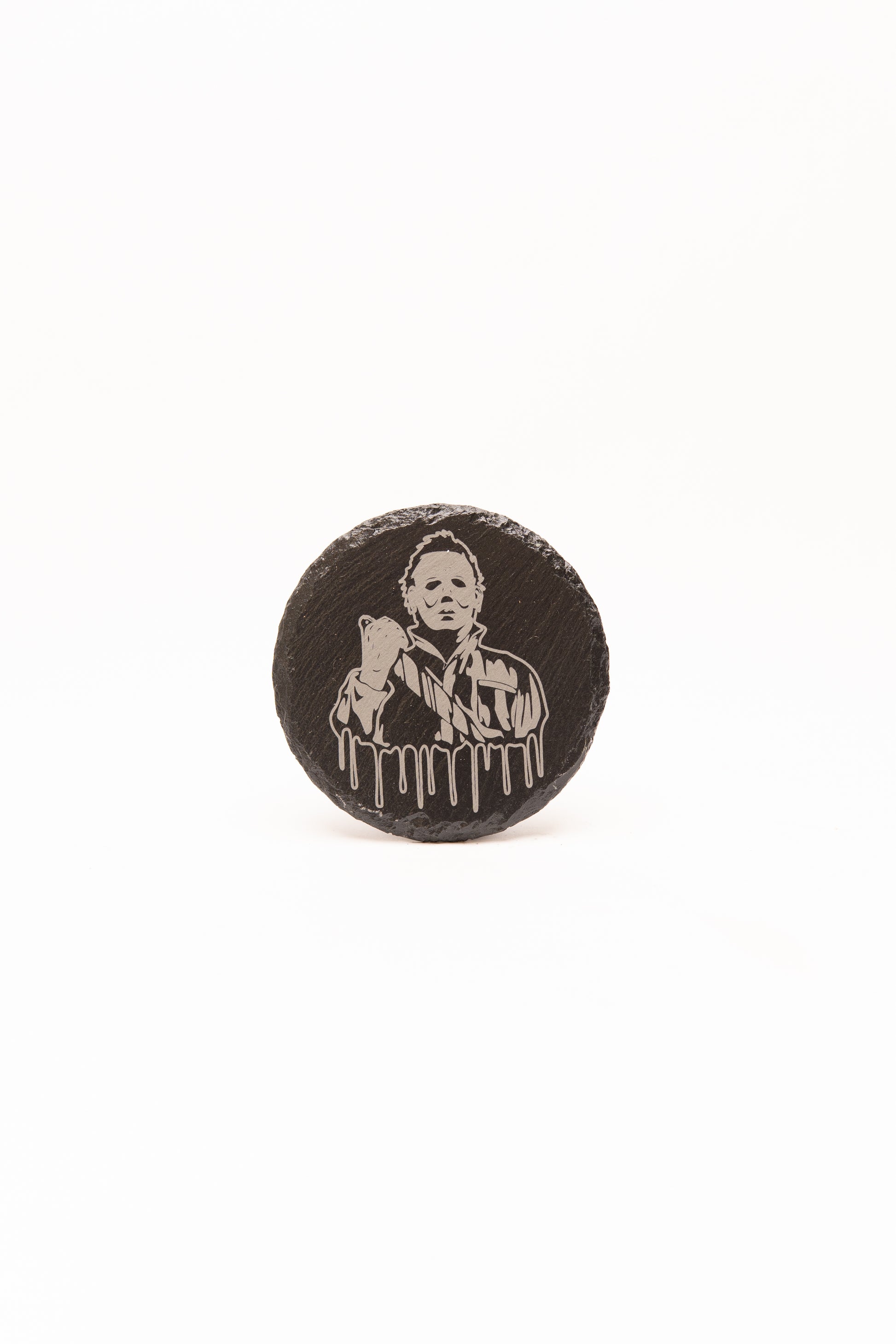Protect your surfaces in style with this "Michael Myers" laser engraved coaster. Featuring a detailed image of Michael Myers from the iconic slasher film series, this coaster is the perfect addition to any horror fan's collection.