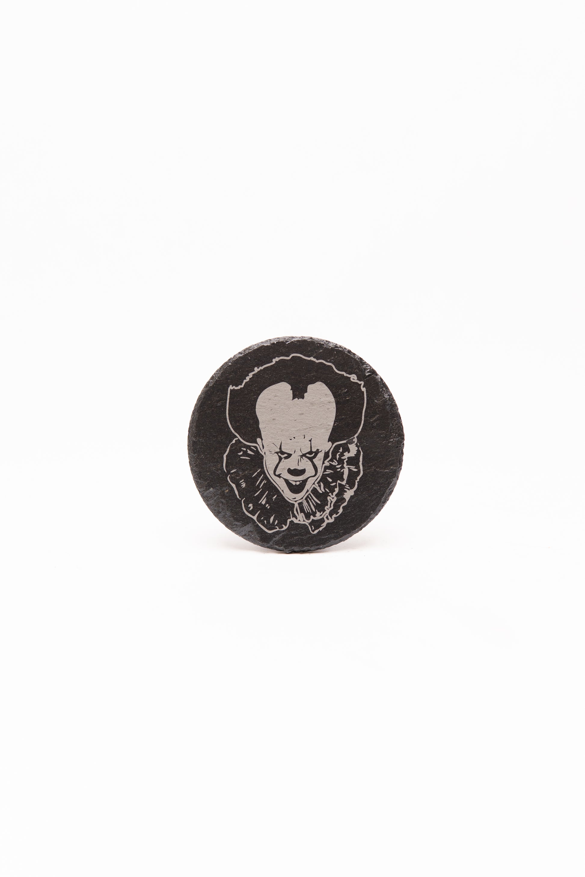 This coaster features an intricate "Pennywise The Clown" laser engraving, making it a unique way to protect your tables and show off your horror genre pride. The engraving is incredibly detailed and durable, crafted with precision to bring the iconic Pennywise character design to life.