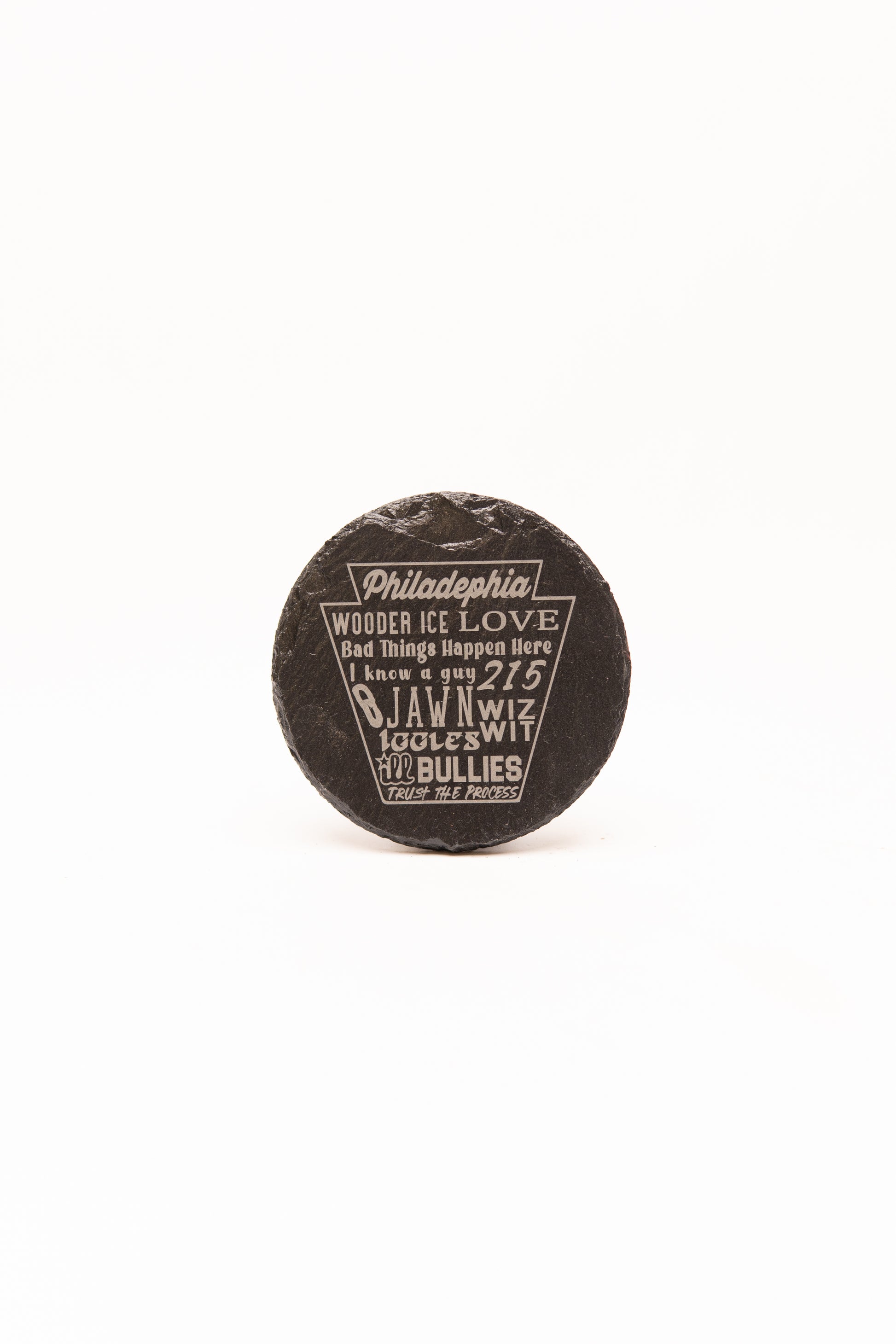This coaster showcases everything that Philadelphia has to offer. The laser engraved design features the notable sayings and qualities of the city, providing a stylish way to show off your "Philadelphia Pride".